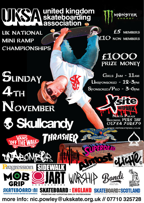 The UK Mini Ramp Champs take place each year, usually in November. Since 2008, when the event was won by Vans skater Aaron Sweeney, the Mini Ramp Champs have taken place at the X-site Skatepark in Skegness on what is universally regarded as one of the best mini ramps in the country.