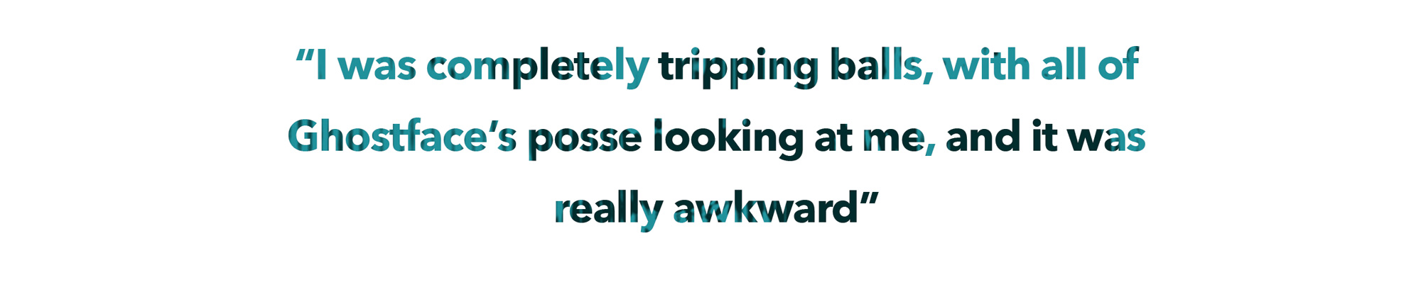 Neither really, it was Nieratko going, “Do you want to interview the Wu Tang?” And I agreed, but then when I got to House of Vans some kid gave me some acid – so I was completely tripping balls, with all of Ghostface’s posse looking at me, and it was really awkward. And it looked awkward as fuck – I mean, why are you making Ghostface watch a skate video? He doesn’t give a fuck about skateboarding, you know? But it was a good bit of hi-jinks, it was fun. I like Nieratko getting me in those kind of situations, he’s the best.