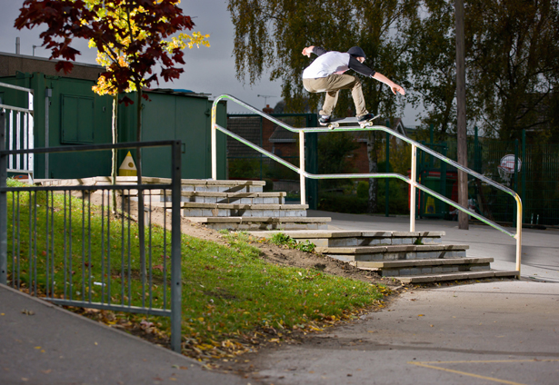 There’s nothing better for me than driving around the UK to some of the most random and previously un-heard of (by myself) places such as Belper (the Derbyshire town where this photo was shot), with someone like Nick, who is probably regarded as somewhat of an underdog as far as street skating goes and being able to be part of the progressional process, the ups and downs and making it through to the other side.