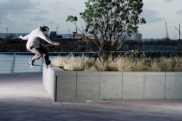 I had to hook him up straight after that, and I’m fully backing him all the way! The photo was shot during one of the few dry spells we had on the trip up in Belfast’s new Titanic Quarter. The spot is so good, just watch out for your board as Denis nearly lost his in the drink!