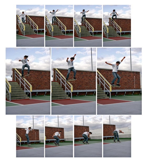 For those who have never skated the Macc rails, they may look perfect but I can assure you they aren’t. The run-up is horribly narrow, the rails are super steep and chuck you into a sandpaper styled floor. John clearly likes to make things difficult for himself, judging by his choice of rail and trick combination. On our first attempt to shoot this when Phil Harvey was filming for ‘Keep Keen’, John broke three boards. With no more boards to snap, John had to go home battered and boardless.