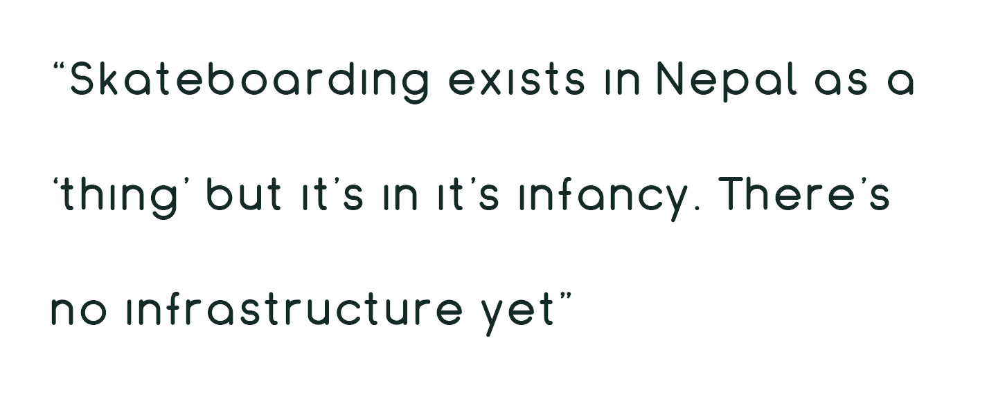 Obviously Nepal is a poor country and the earthquake fucked up a lot of the existing infrastructure, so can street skating exist there? Is there the architecture for it to progress like it does in big cities in richer parts of the world?
