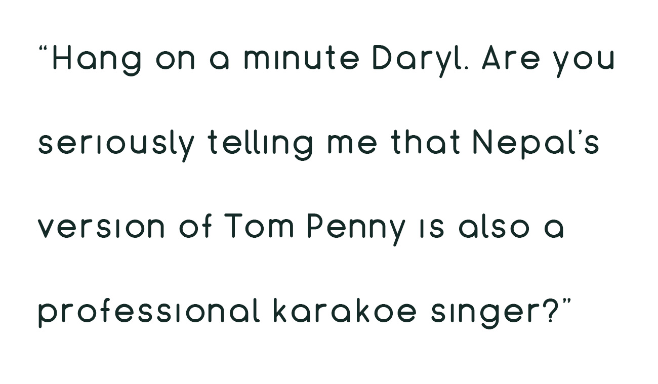 What! Hang on a minute Daryl. Are you seriously telling me that Nepal’s version of Tom Penny is also a professional karaoke singer?