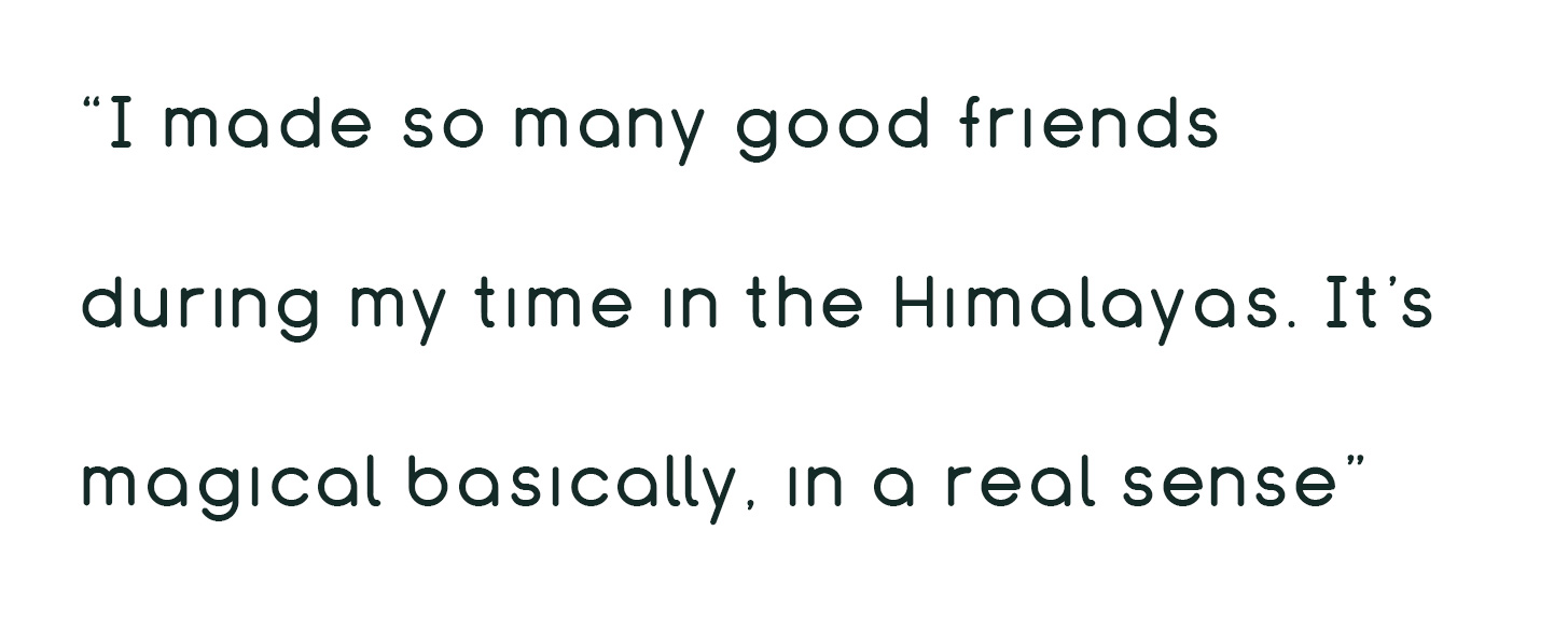That’s it. It’s refreshing. My body and my soul need it. I’ve been working hard for the last year and I just felt like I needed to disconnect from everything for a while and that’s what the Himalayas offer. A much needed experience. I’ve never seen anything quite like that place – I’d recommend visiting to anyone.