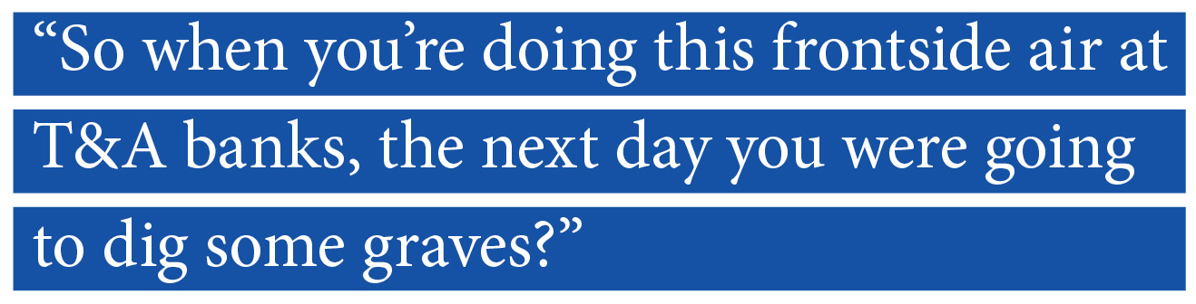 So when you’re doing this frontside air at T&A banks, the next day you were going to dig some graves?