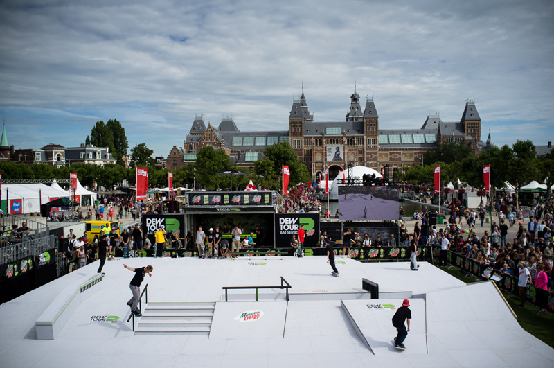 The fact that said photos would be at the Dew Tour Am Series finals in Amsterdam was definitely a bonus. Amazing weather was forecast at the outdoor street course located in the beautiful Museumplein park amidst The Uitmarkt festival. This three-day celebration of the Netherlands cultural scene sees over 2000 performers entertain 500,000 visitors (if the hype is to be believed).