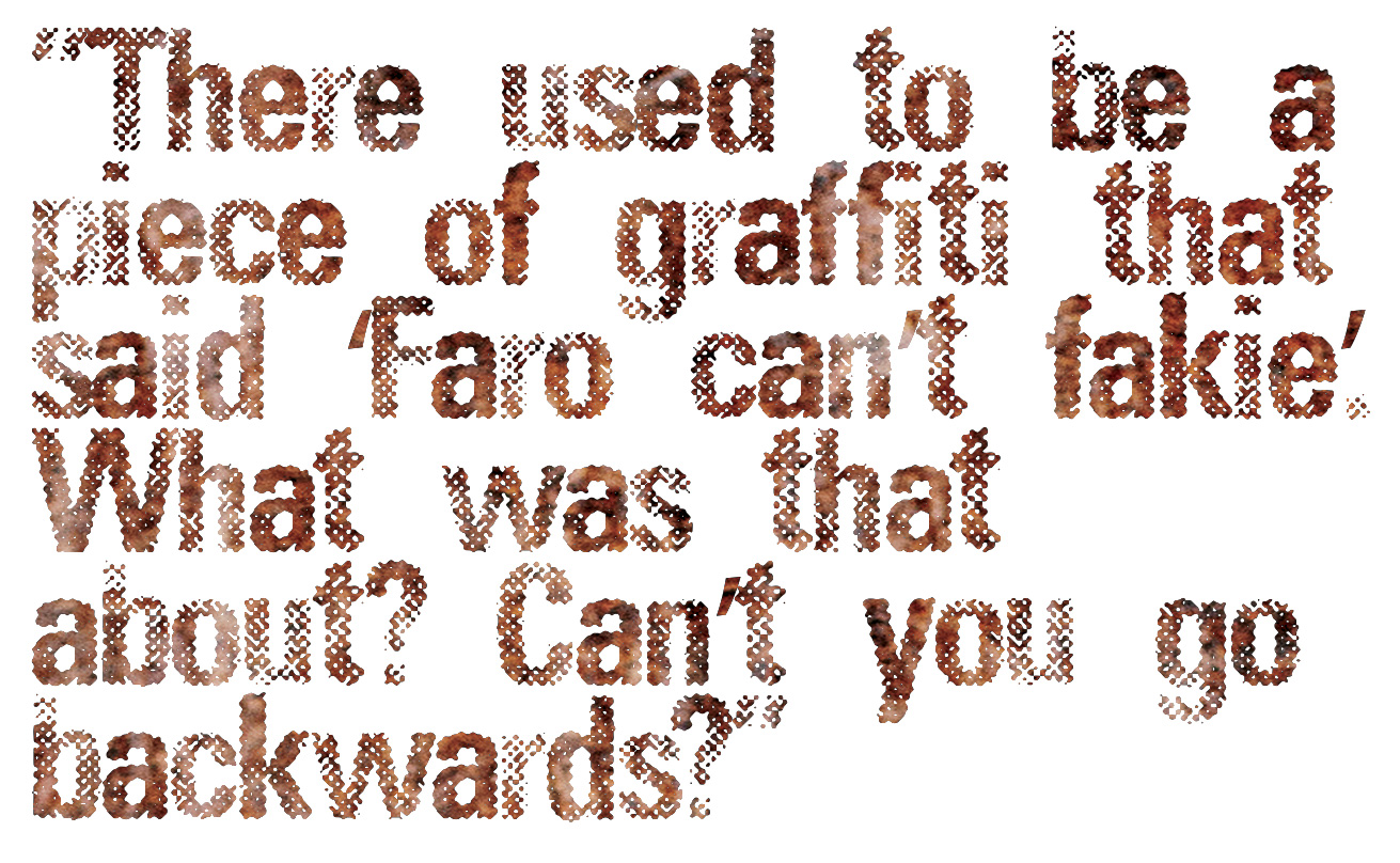 There used to be a piece of graffiti at Thornes Park in Wakefield that said ‘Faro can’t fakie’. What was that about? Can’t you go backwards?
