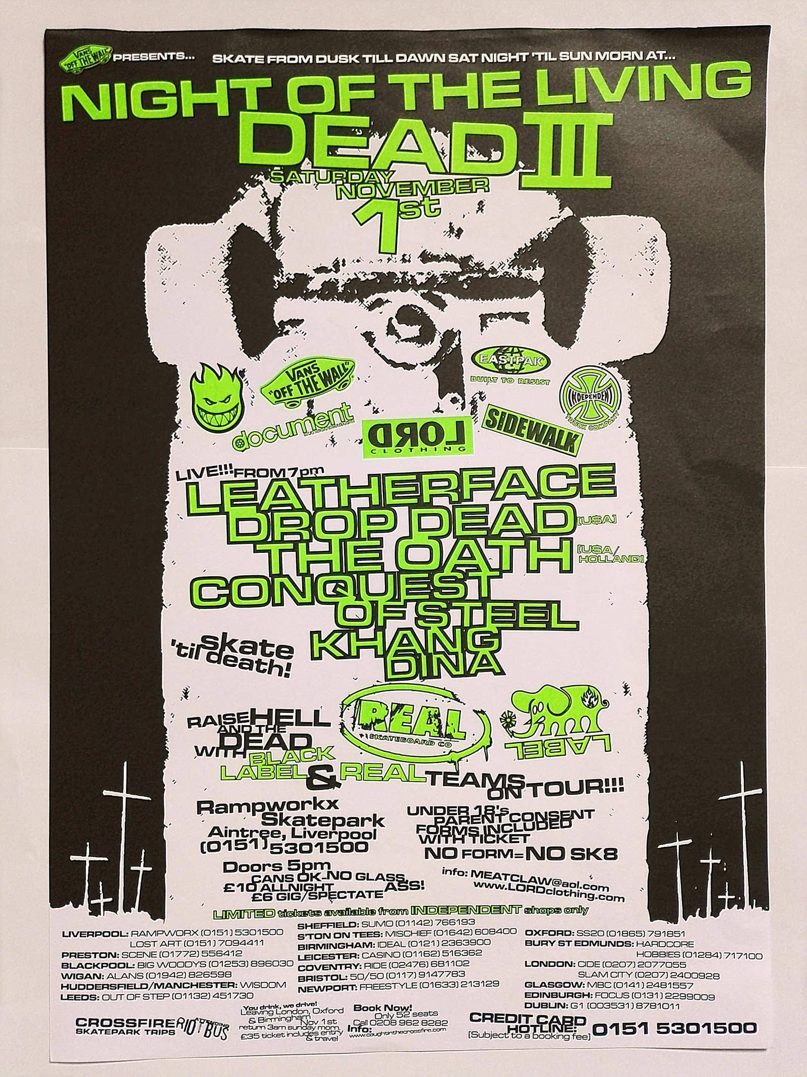 15 years (to the day) have passed since the very first Meatclaw orchestrated Night of the Living Dead event exploded in your face at Rampworx skatepark, Aintree, Liverpool.