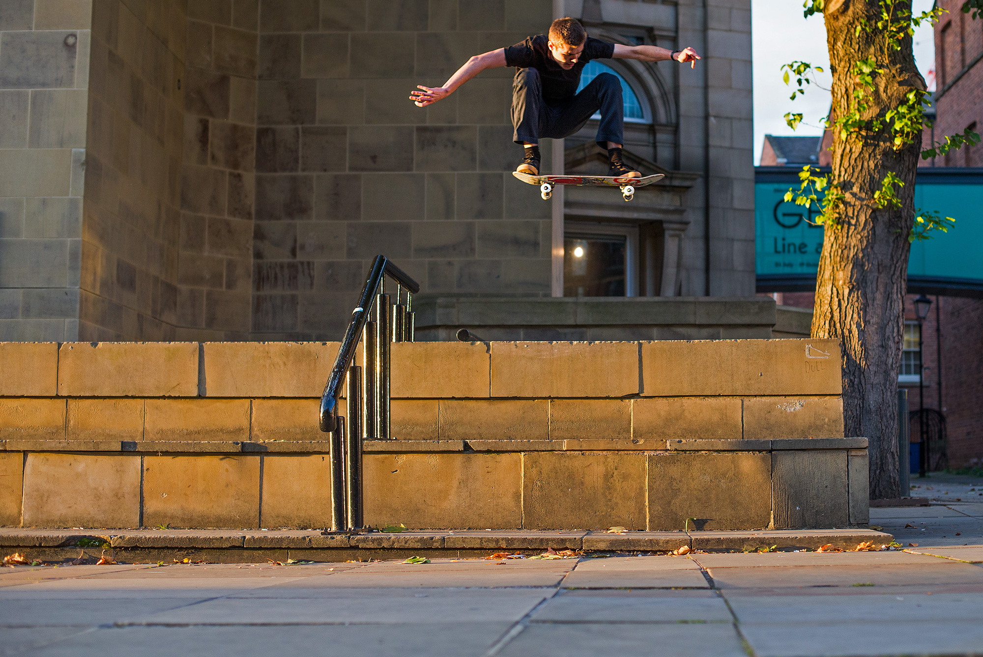 It was actually really good growing up in Harrogate. For such a small town, we had a really good skate scene. I originally started skating with my friend Jonty. It was just me and him, a two-man crew. Then when we hitting up local spots, we started to meet other people and the crew grew from there. There were the ‘Skateharrogate’ boys like Tim Humberstone, Liam Hobson and Jamie Humphrey and then there was our crew that was a little more diverse. It was the off-cuts of different crews all mashed into one. We weren’t cool enough to be in Tim’s crew because we didn’t like Oasis (laughs).
