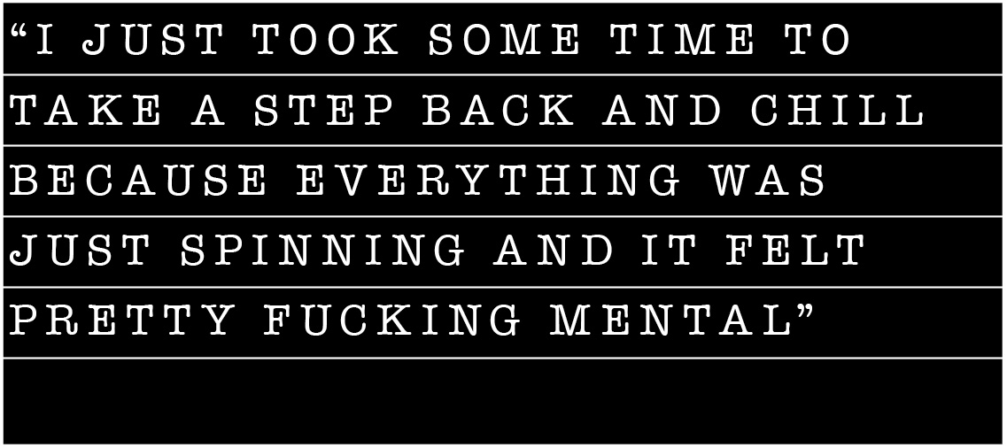 Pretty soon after that I came and chilled at yours in Leeds and obviously it was all cool. I know now that it’s not a thing, but back then my head was just a bit out of control. I wasn’t too sure how to deal with it all.