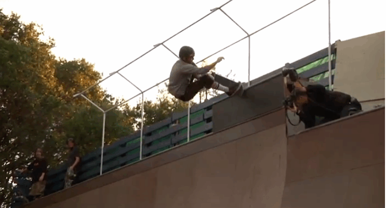 Sam Beckett flip melons the channel gap at Washington Street, San Diego.