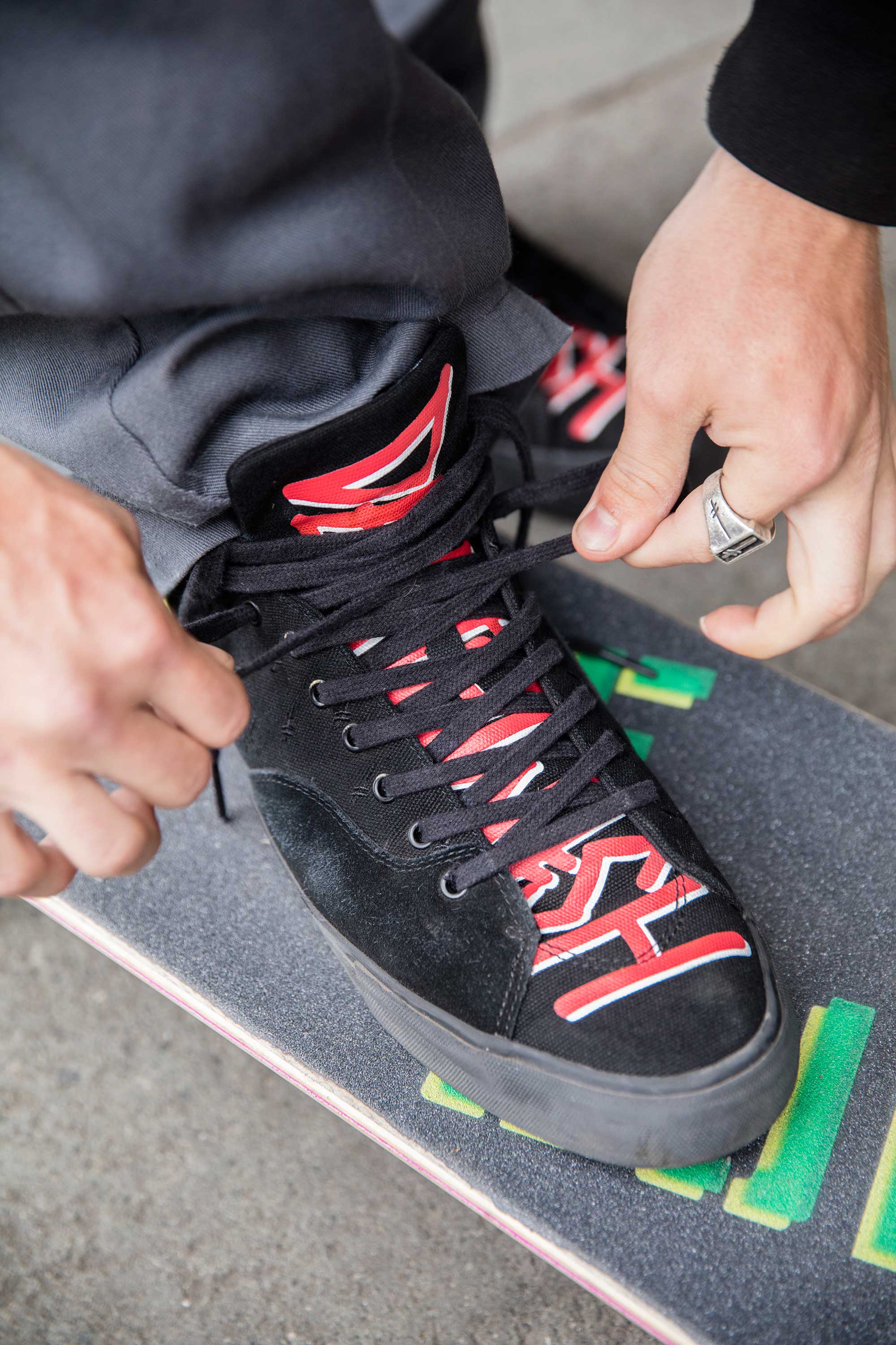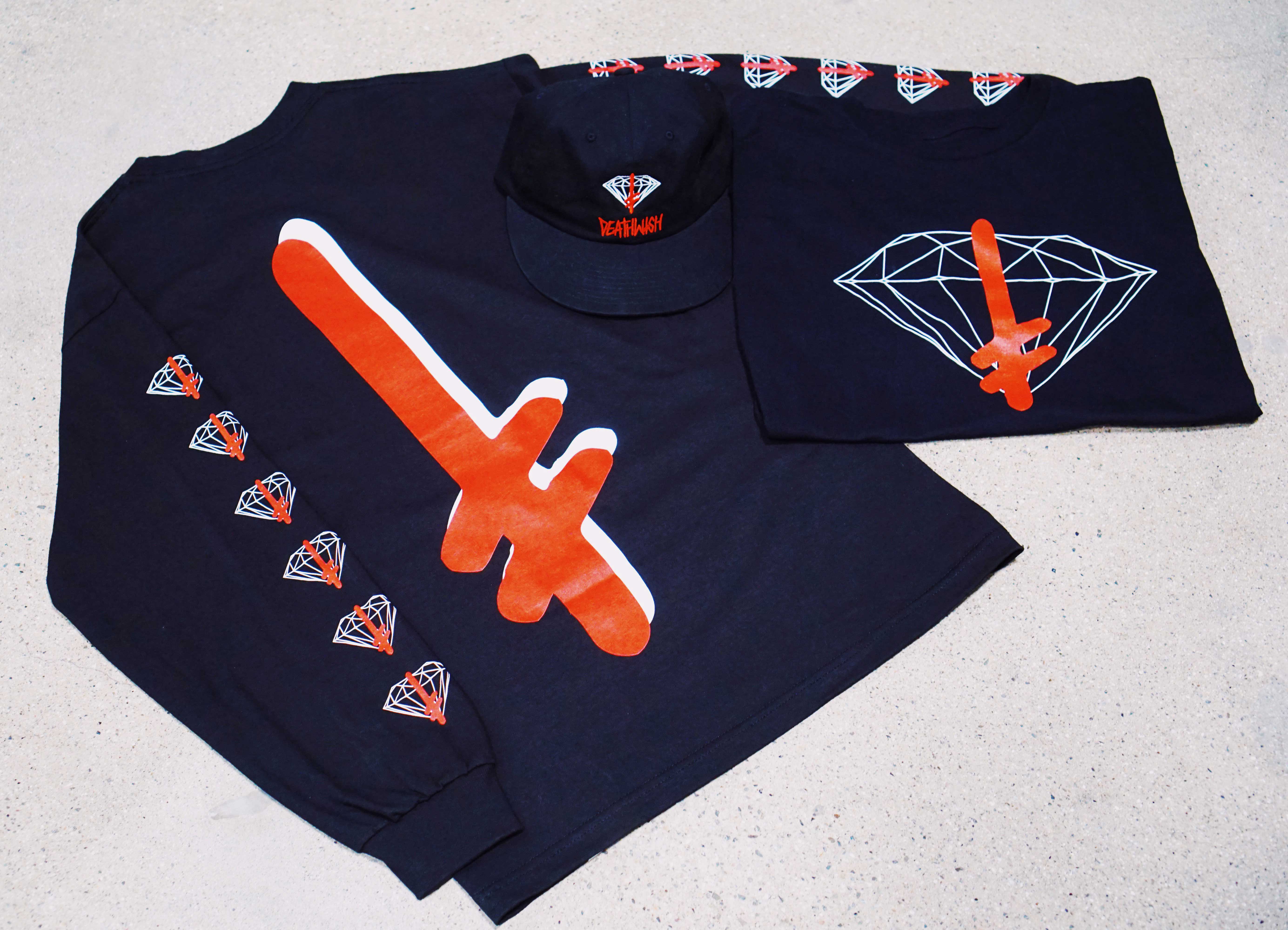 Anyhow, the Diamond Supply Co. x Deathwish collabo mentioned in Jamie Foy’s interview is out now and includes some very fetching Deathwish-themed twists on various apparel staples, plus an iteration of Jamie Foy’s favourite Diamond footwear shoe, the Select Hi, complete with Deathwish logo branding on the upper, heel and tongue, along with Diamond co-branded custom insoles.