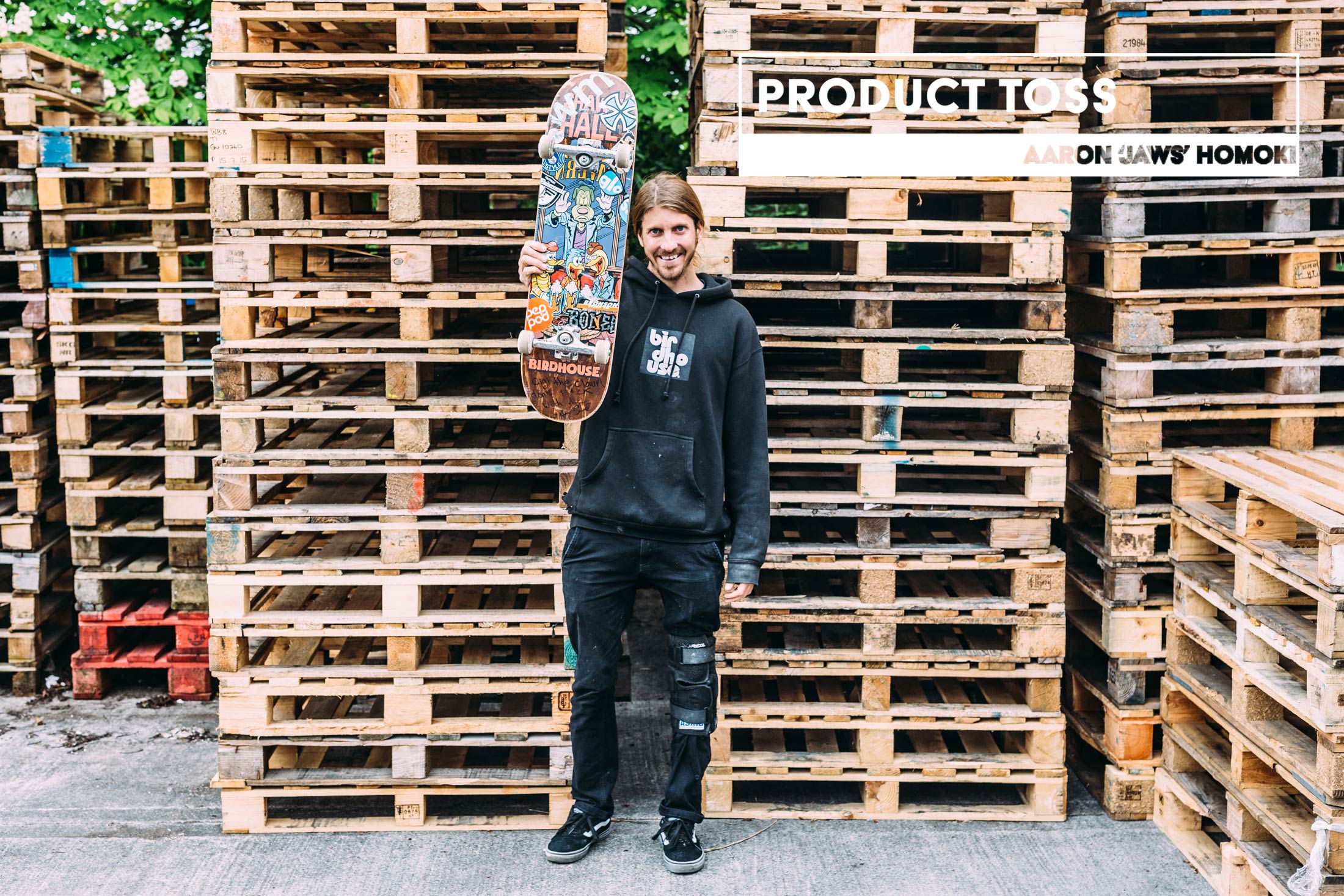 With a few select members of the Birdhouse team over on these shores recently for the UK leg of the Birdhouse Skateboards 2018 Euro tour, we figured it was a good opportunity to find out what kind of product fueled the suicidal antics of the aforementioned Phoenician. If you’re looking for ideas of the best rig to run whilst leaping down stuntman sized sets of stairs, or slinging padless 540’s, then look no further – welcome to Product Toss with Jaws.