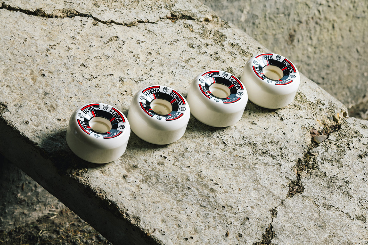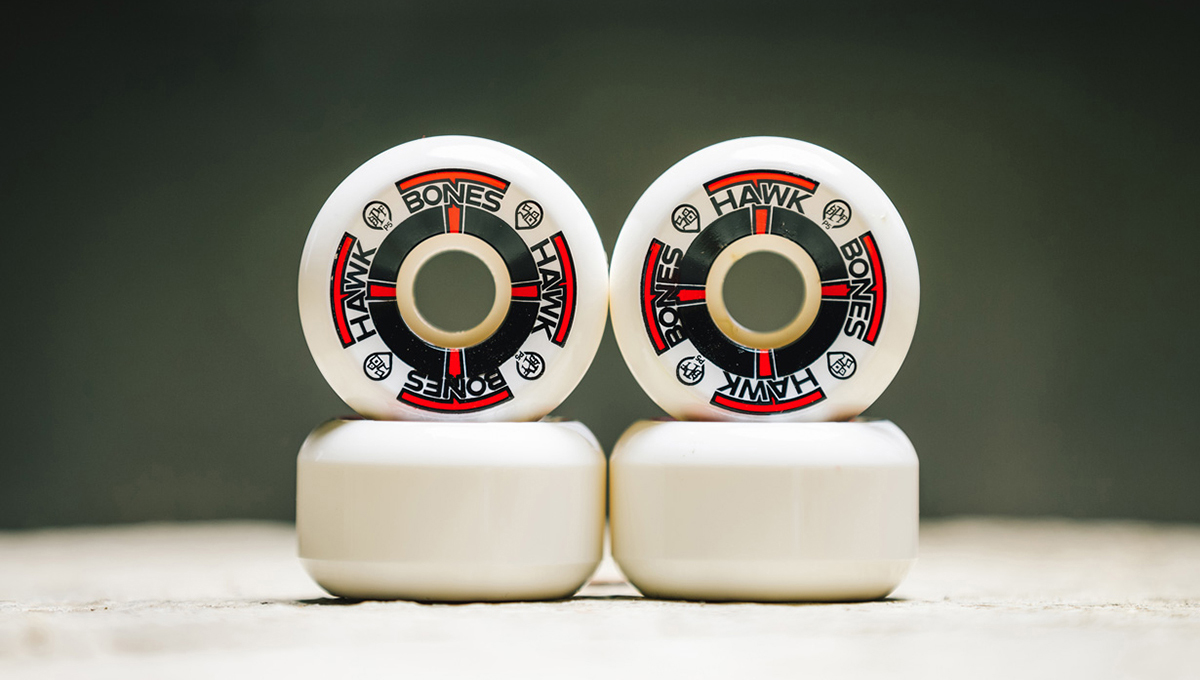 The Bones Wheels Tony Hawk ‘T-Bones’ seen here are a perfect example with a wheel at 58mm in diameter coming in at 84b on the durometer (roughly equivalent to a 104a reading on the more commonly used Durometer A Scale).
