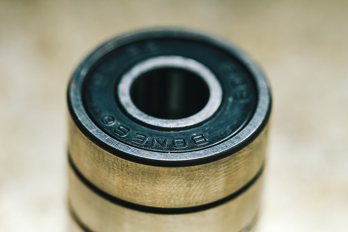 Bones Swiss bearing’s single, removable, non-contact rubber shields mean that you can clean and lubricate your bearings as needed with no danger of damage, and the non-contact construction of those same rubber shields means there is no chance of bent or damaged shields interfering with the free movement of the internal components as with inferior metal-shielded skateboard bearings.