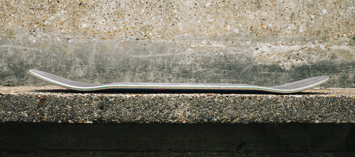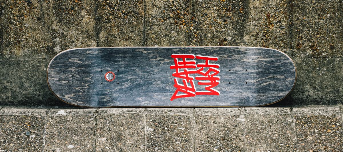 Clocking in at a narrow 7.75” wide, this logo based ‘Deathwish Stonewash’ deck is aimed at the denim appreciating skateboarder who prefers their set up a little more on the slender side. The concave isn’t too steep either, so if you’re in the market for a fairly mellow nose and tail on your 7.75” whip, you should be able to hear this shape clearly screaming out to you over the top of that Motley Crü live bootleg you’re currently listening to on YouTube.
