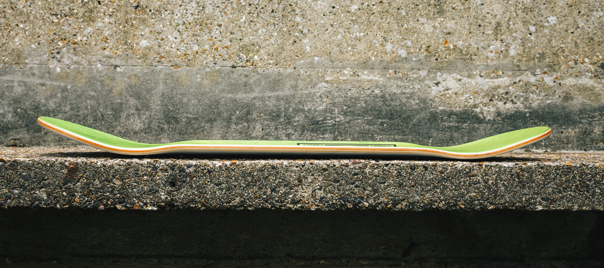 This particular 8” number comes on a traditional popsicle shaped deck, though the nose is fairly sizable, meaning you’ve more space for that front foot when banging out your nollie trick repertoire, and more surface area to plant onto the ledge when locking into those Wu Welsh inspired noseslides.