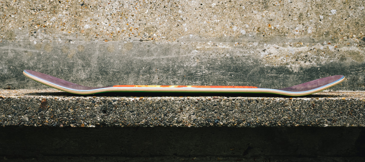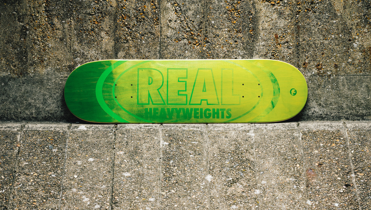 The Real Heavyweight deck series also incorporates deck construction technology that strengthens the traditional vertically laminated 7 plys with two cross-directional thicker X-band plys at stress points to strengthen the board and hold pop. This means that the deck is slightly heavier than your average skateboard, (hence ‘Heavyweights’), but this is offset by a board that will last much longer.
