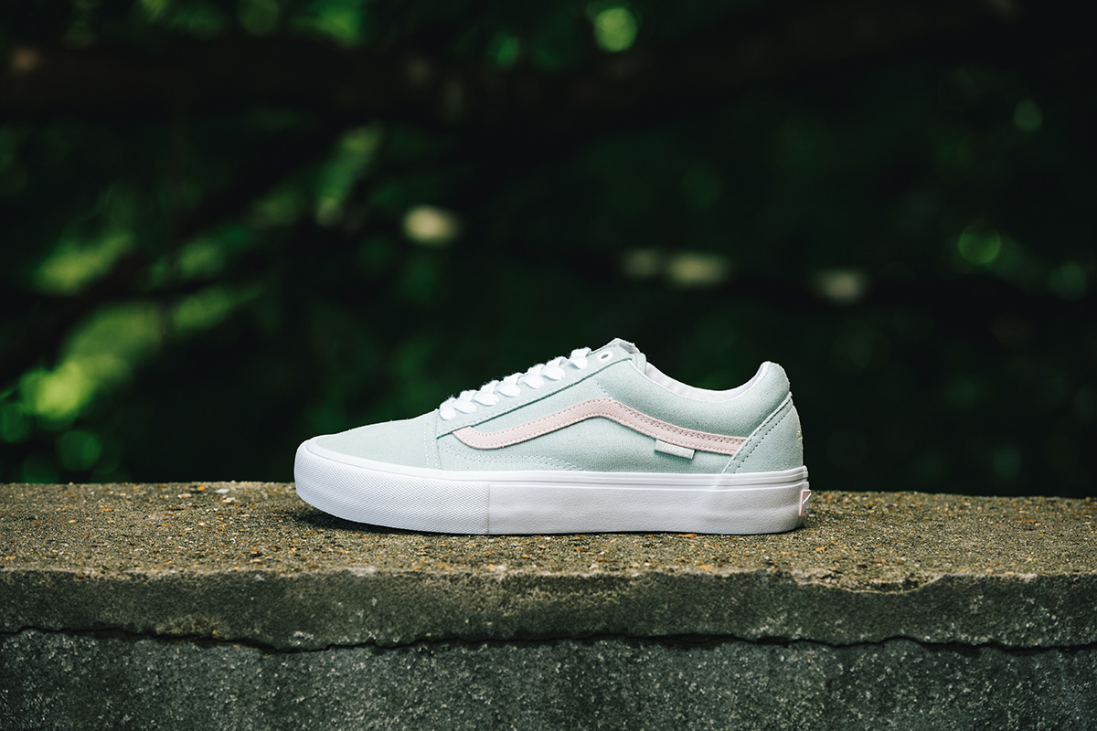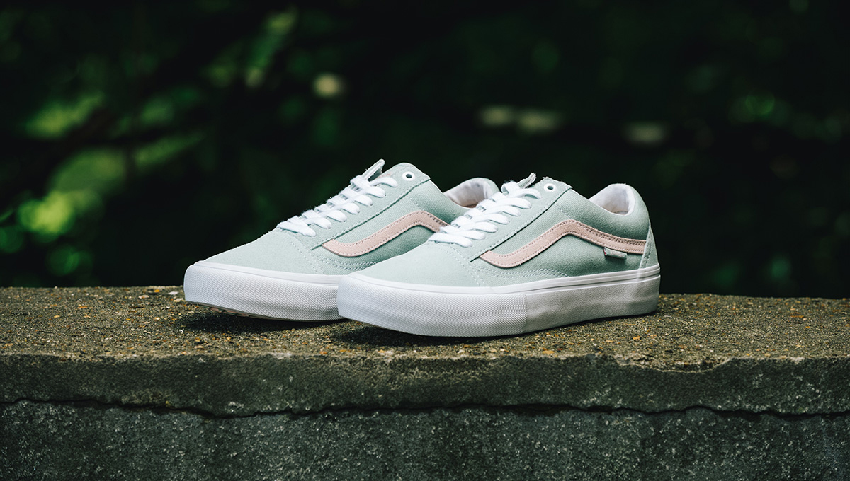 “if you’ve still never tried a pair of Vans Old Skools then you might as well start here with this fresh mint/pink iteration from relaxed madman Daniel Lutheran”