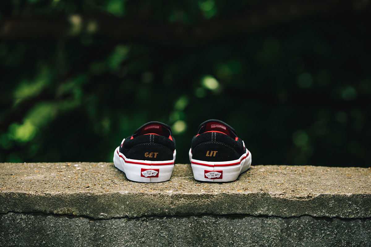 A simple yet eye catching palette of black, red, and white reflects the colours synonymous with both brands, and with dashes of gold topping the model, along with Spitfire’s iconic ‘Bighead’ logo emblazoned onto the shoe’s tongue, this is an aesthetic take on one of the most beloved silhouettes in all of skateboarding. The shoe also subtly incorporates Spitfire’s ‘Swirl’ graphic onto the toe bumper’s tread with the same graphic plastered onto the shoe’s comfortable and supportive Ultracush insole. Finally, the heel panel of the shoe boasts ‘GET LIT’ referencing Spitfire’s devotion to ‘Keeping The Underground Lit’.