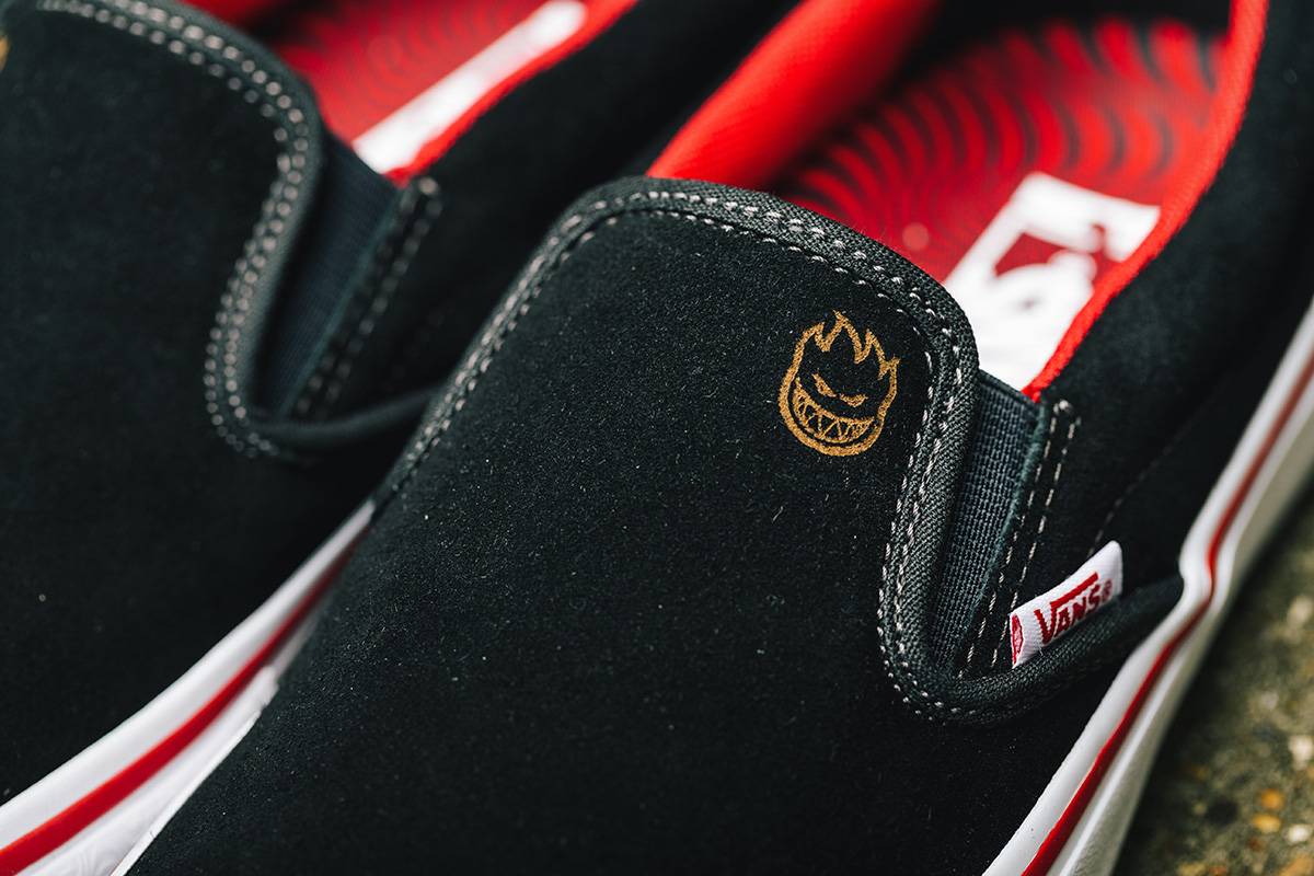 This particular iteration of the classic that you can see here, namely the Vans x Spitfire Slip On Pro Van der Linden excels in both its simplicity and technical specifications. An all-suede black upper is backed with a Duracap under layer, doubling up the durability of the shoe, with Vans’ timeless vulcanised Waffle sole providing the grip and board feel that skateboarders have cherished since the 1960s.