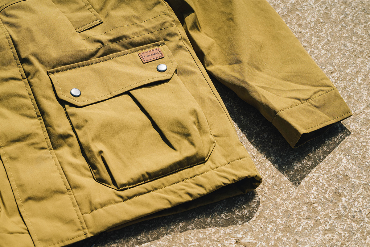 The Volcom Lidward Parka comes in Burnt Khaki as seen here and also in an all-black version for the die-hard traditional Parka fans.