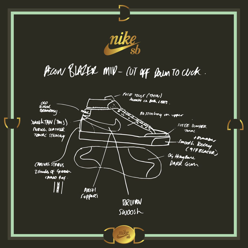 Starting out with the timeless Blazer Mid QS silhouette, representatives from Note skate store, Street Lab, Riot skate store and Supreme, London were given an hour to create their own take on the Nike SB Blazer to come up with a new twist on this perennial favourite.