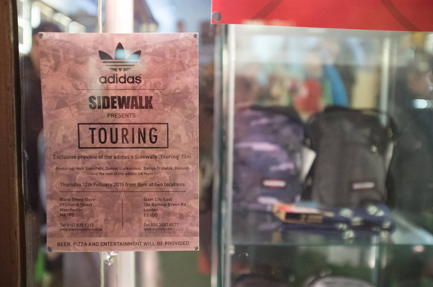 The adidas x Sidewalk ‘Touring’ premieres went off just before the weekend in both London & Manchester – Here’s a bunch of rad photos from the Black Sheep event caught by the ever brilliant Chris Johnson. Massive thanks go out to the staff of both Slam City East & Black Sheep for the hospitality. Check the ‘Touring’ feature HERE