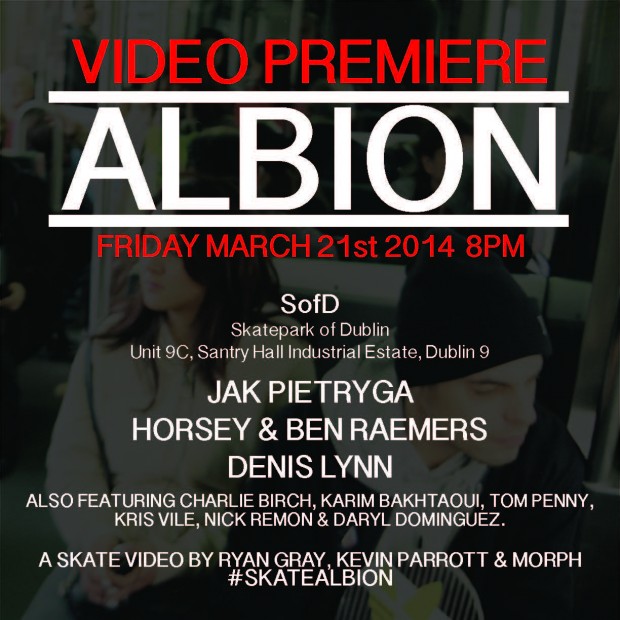 The guys at Skatepark of Dublin are hosting a premiere of the independent UK video ‘Albion’ next Friday March 21st, with an 8pm showing taking place at the park.