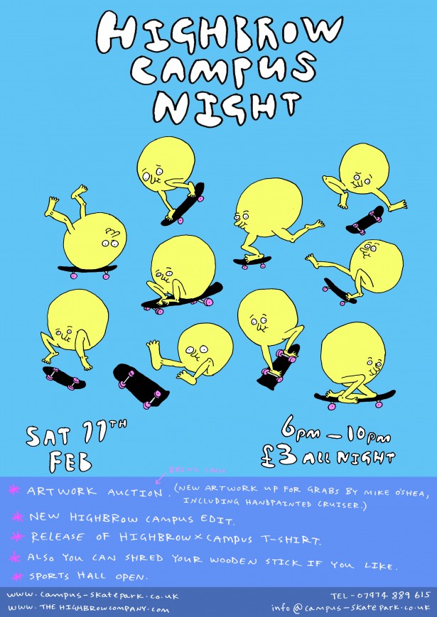 Mike O’Shea’s Highbrow operation have teamed up with Campus Skatepark in Bristol in order to bring you the first “Highbrow X Campus” evening. If you’re...