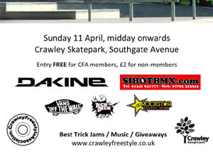 Crawley Freestyle Association have organised an Easter jam at the Crawley skatepark for Sunday 11th April, so all you West Sussex heads go show some...