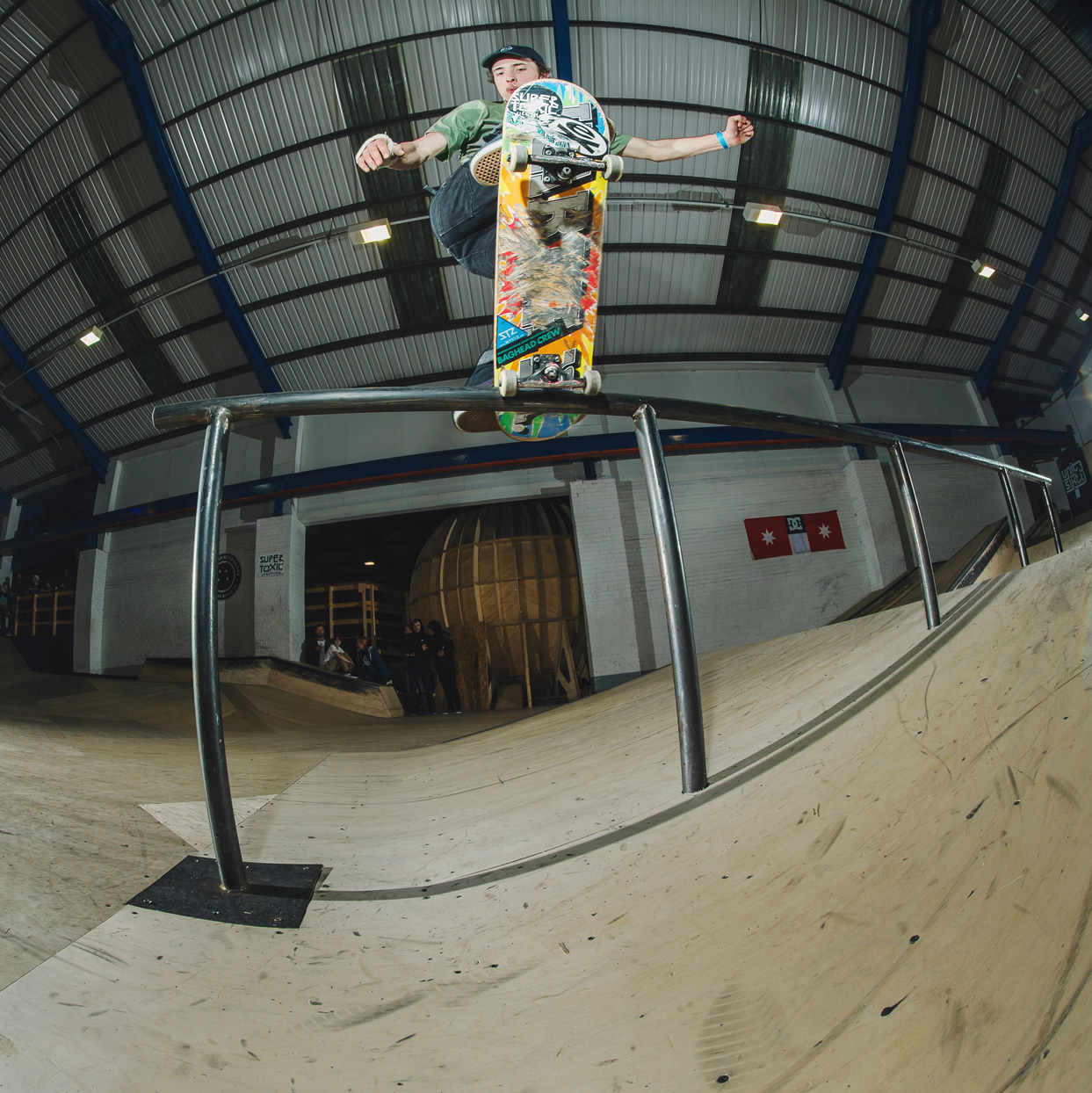 We opened the doors and kicked things off with an under 16’s jam that featured local rippers Joe Wood and Adam Cox, as well as more established yoot like Finley Kirby, who managed to make front blunt frontside flips look strangely stylish!