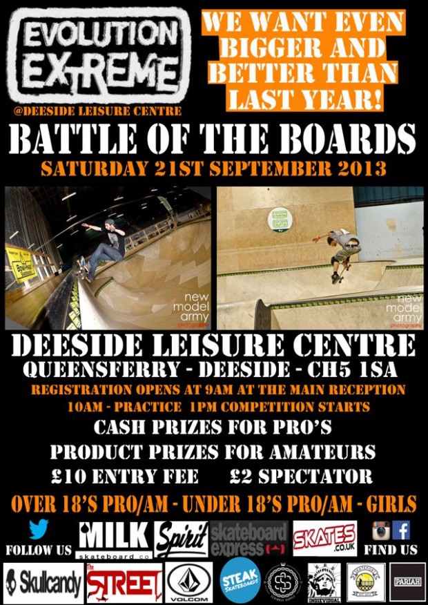 Deeside Skatepark’s Battle of the Boards is returning to the North Wales park on Saturday September 21st for another day of sponsored and unsponsored carnage!