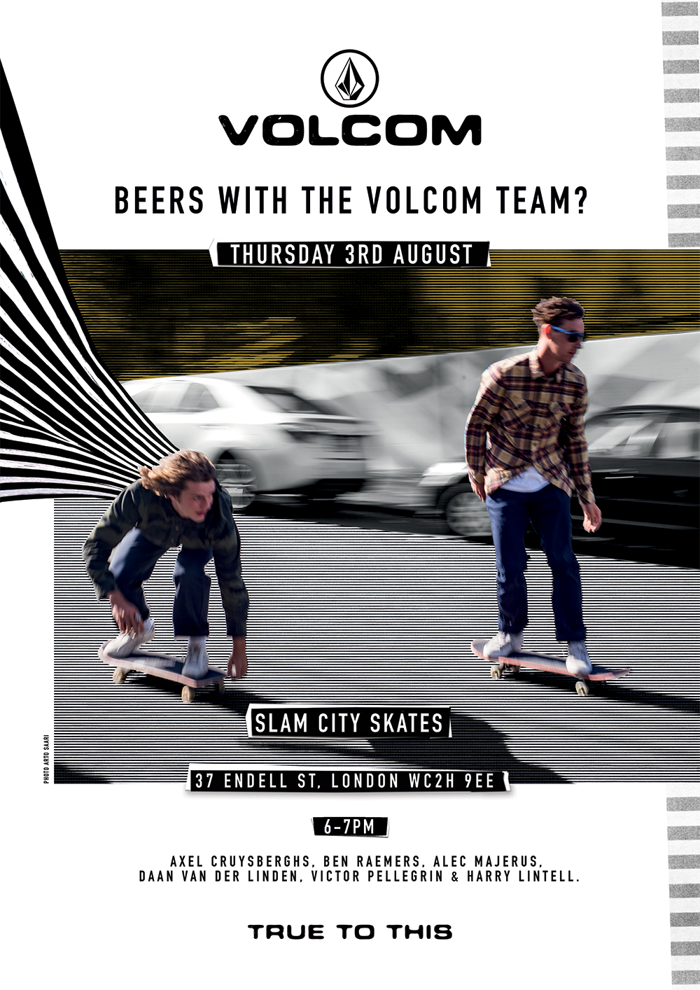 Improve your Thursday evening by heading down to Slam City Skates (Covent Garden branch) tomorrow for some free booze on the Volcom team, with various riders in the building between 6pm and 7pm.