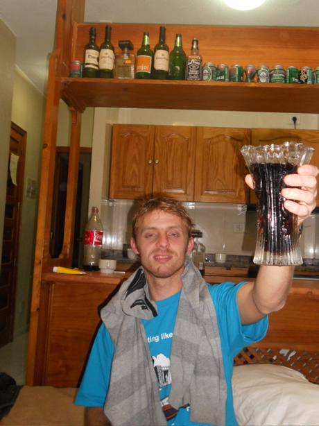 Chris shoes you how local honey rum should be consumed - straight out of a vase!