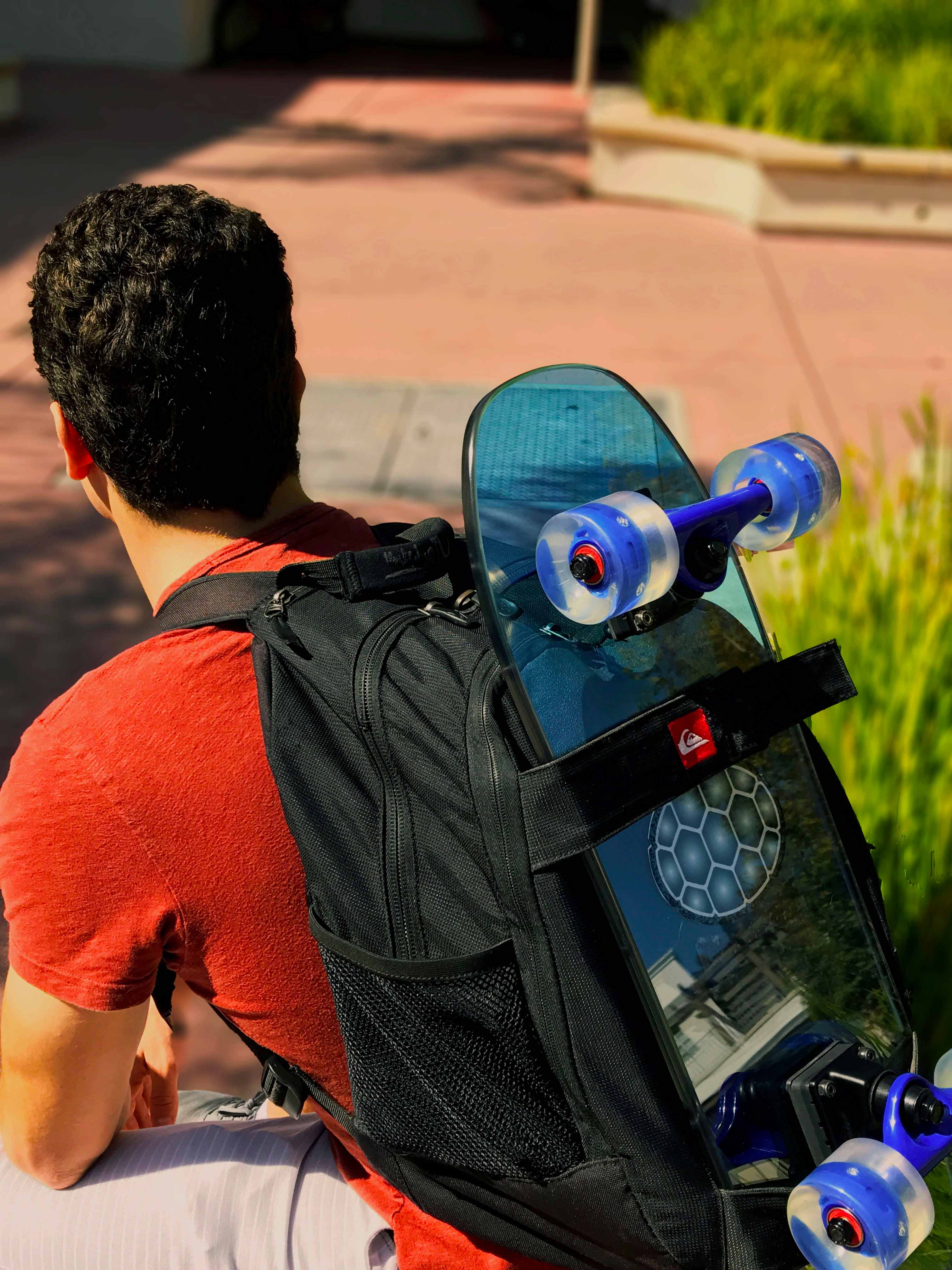 I was at college when there was a school shooting at the University of California Los Angeles, which is just 11 miles away. My roommate and I were a little freaked out and discussed strategies for staying safe in the event of an active shooter situation. I told my roommate, “It’s too bad your skateboard isn’t bullet proof because you always have it with you and it would make a great shield.” That gave me the idea. Not long after I started working on the prototype a teacher and a student were killed in San Bernardino, which is close to where I live.