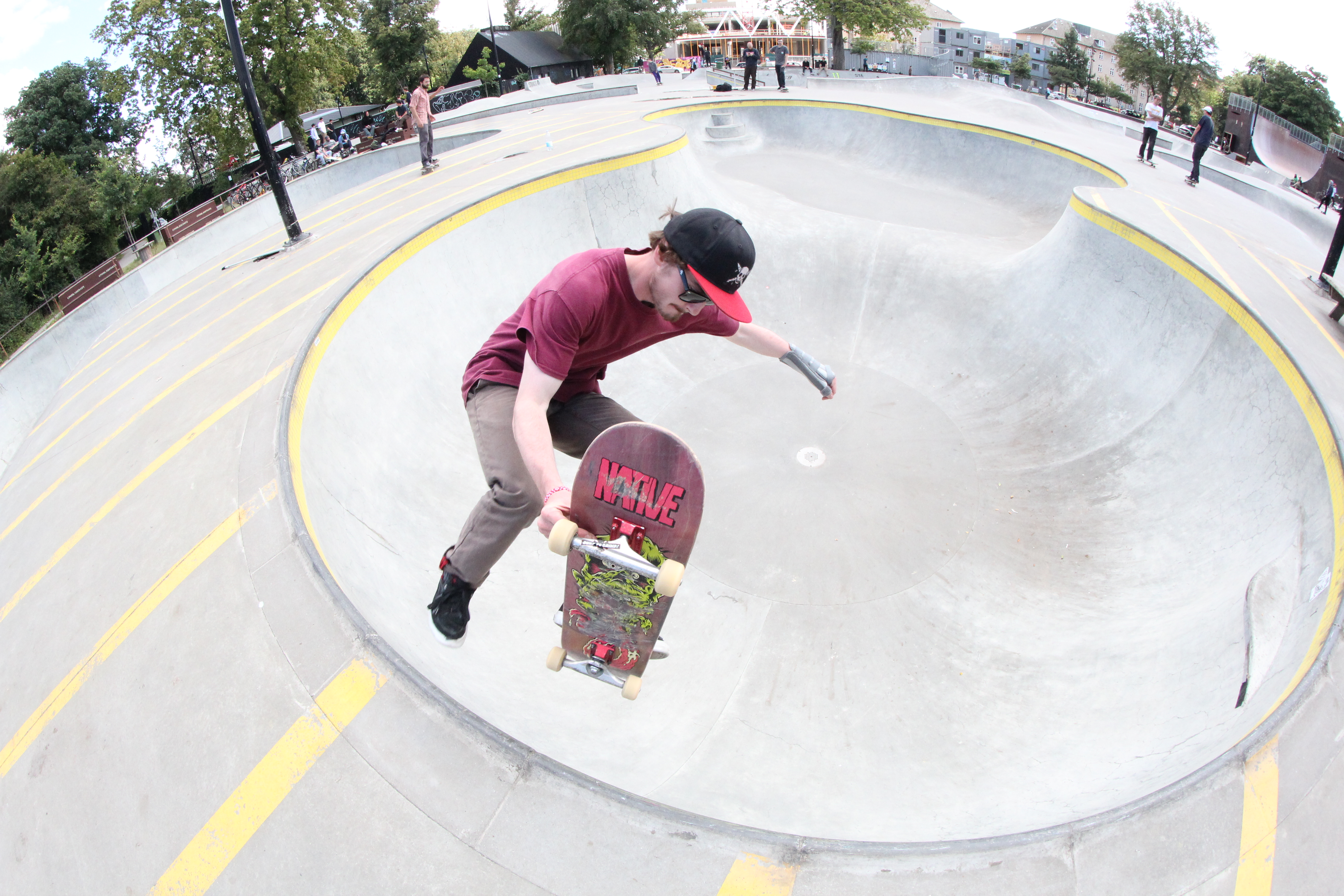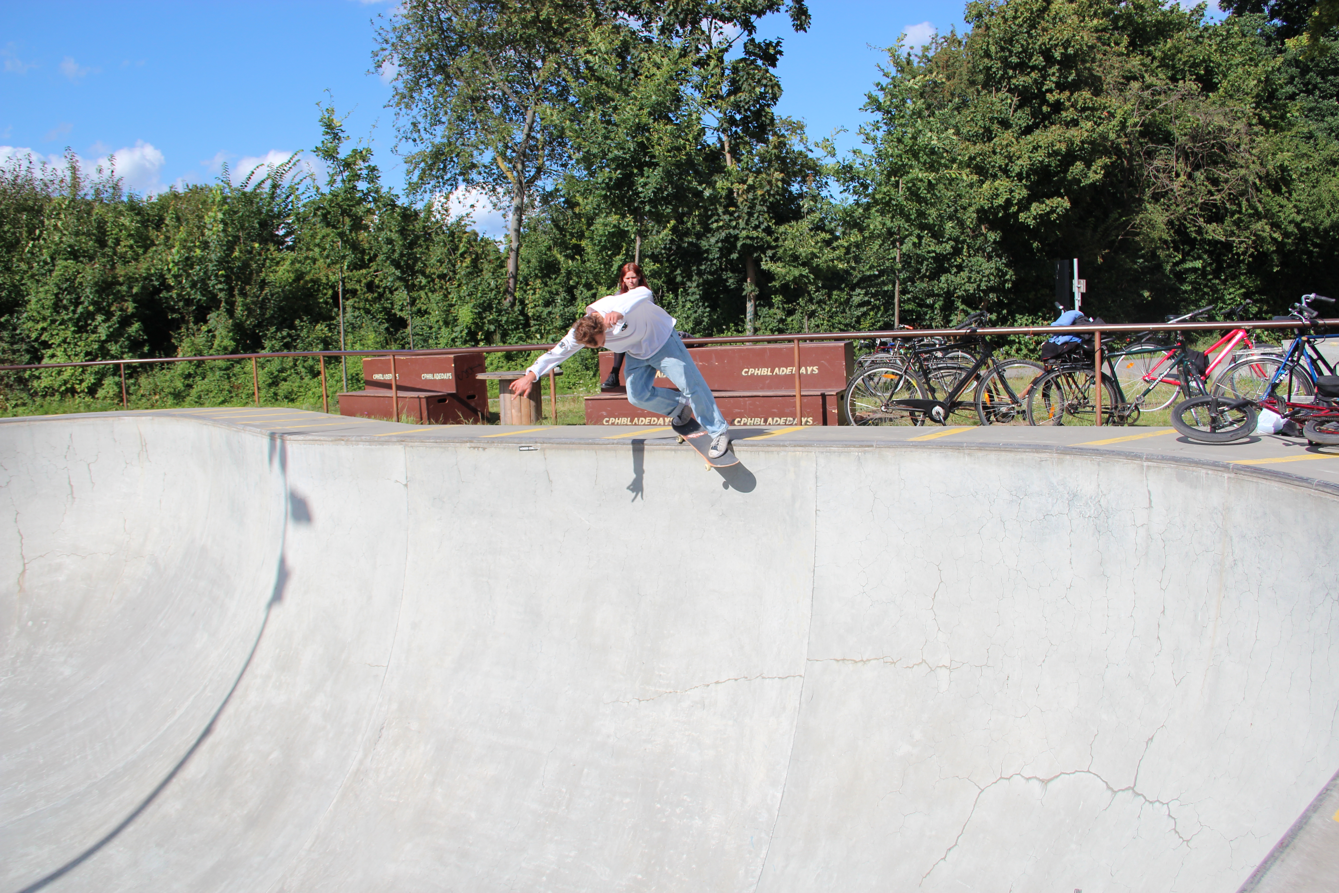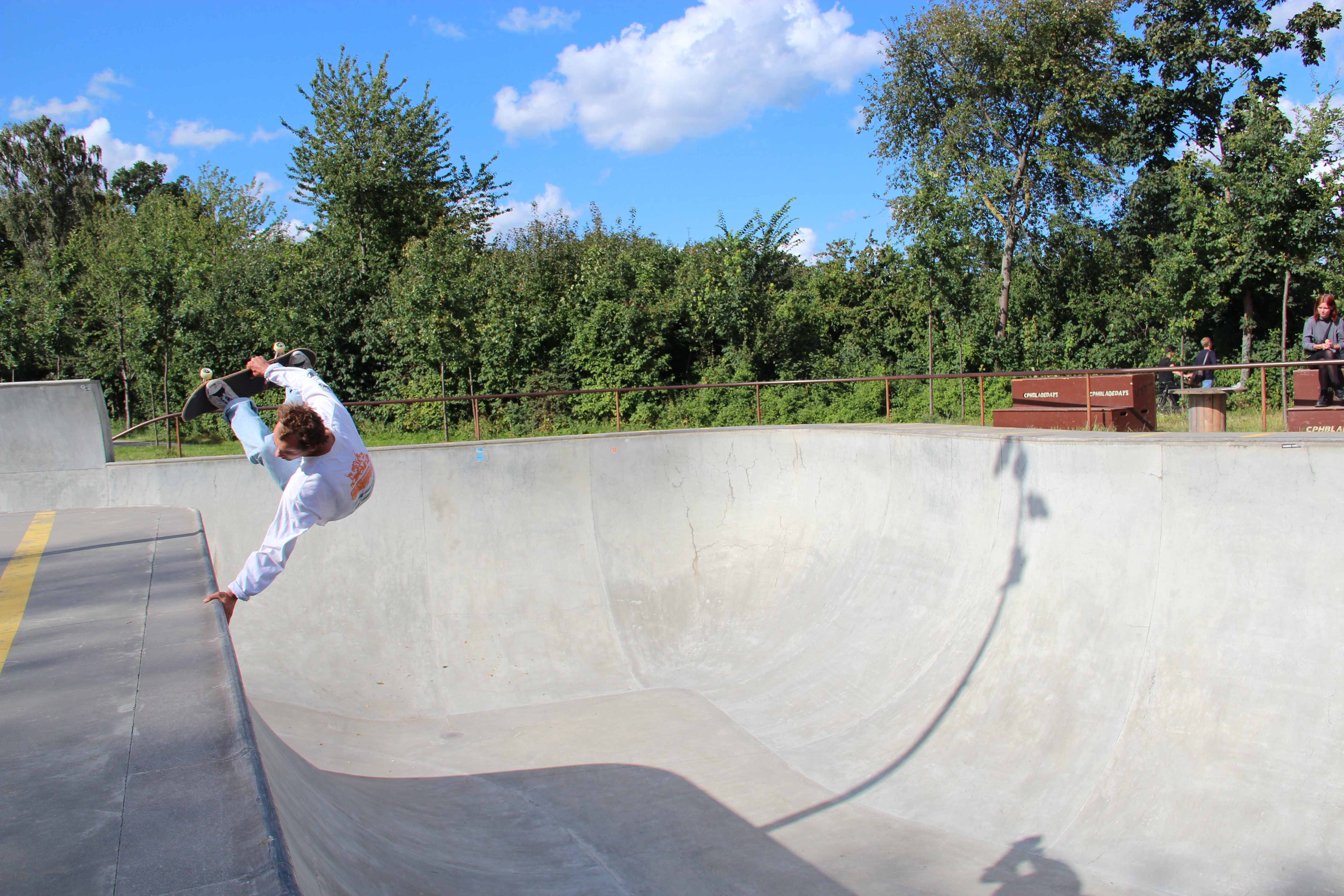 Day two of the Copenhagen Open sees first a ledge session and then a flatbar and jump ramp jam covering the main events, but I find myself much more tempted when I hear of a big session going down at Faelladparken followed by Hullet DIY. Having missed the previous day’s park session because of the rain – and knowing I would get better photos in a less frenzied media environment – I make the executive decision to head to the jewel in Copenhagen’s concrete crown and meet up with the crew (after a solid period of getting lost, despite aiming for what is pretty much the biggest park in the city).