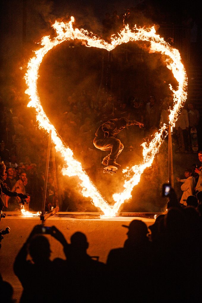 Things later move towards the snake run, where serious business occurs. Rune and Beckett start attacking the over vert section – nosegrinds, back smiths and frontside airs before Rune finishes proceedings with an alley-oop back smith. Meanwhile Raven Tershy takes to the channel gap which proceeds the over vert, battling for an indy air which he eventually makes and hyping the crowd immeasurably. As it gets dark a huge heart shaped ring of fire is lit, which people fly through as the judges talk nonsense. We drink until things die down before wandering back to the hostel, saving ourselves for things to come.