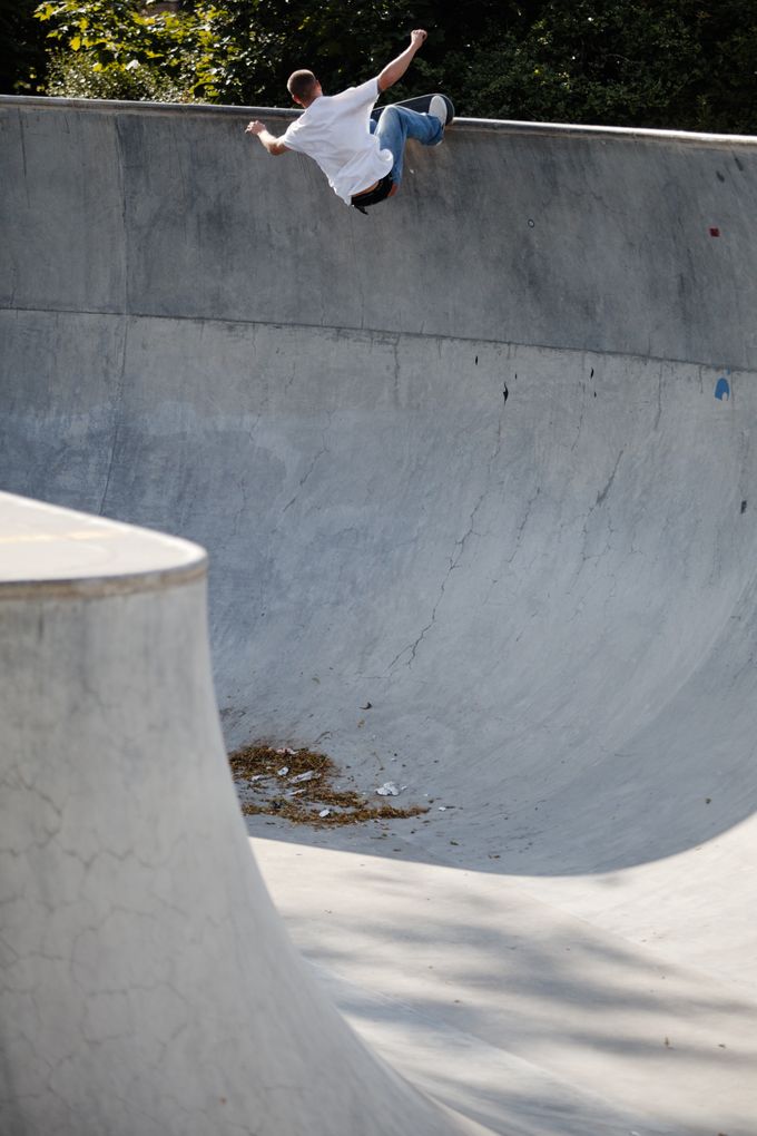 In the meantime, the transition session is heating up while eyes are on the street session. Raven is already starting to hurl himself at increasingly gnarly tricks while Rune circles like a bull shark, occasionally charging into the snake run with an exploratory frontside biter before returning to the platform. Sam Beckett is padding up, things are undoubtedly going to get gnarly. The overwhelming size of what is going down means I keep myself to the amoeba pool, enjoying the sporadic sessions as people drift in and out and battering myself against the transitions while others watch the action on the street course.