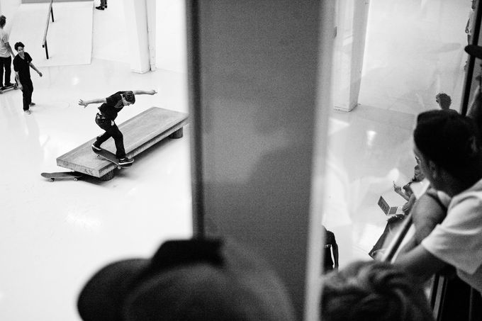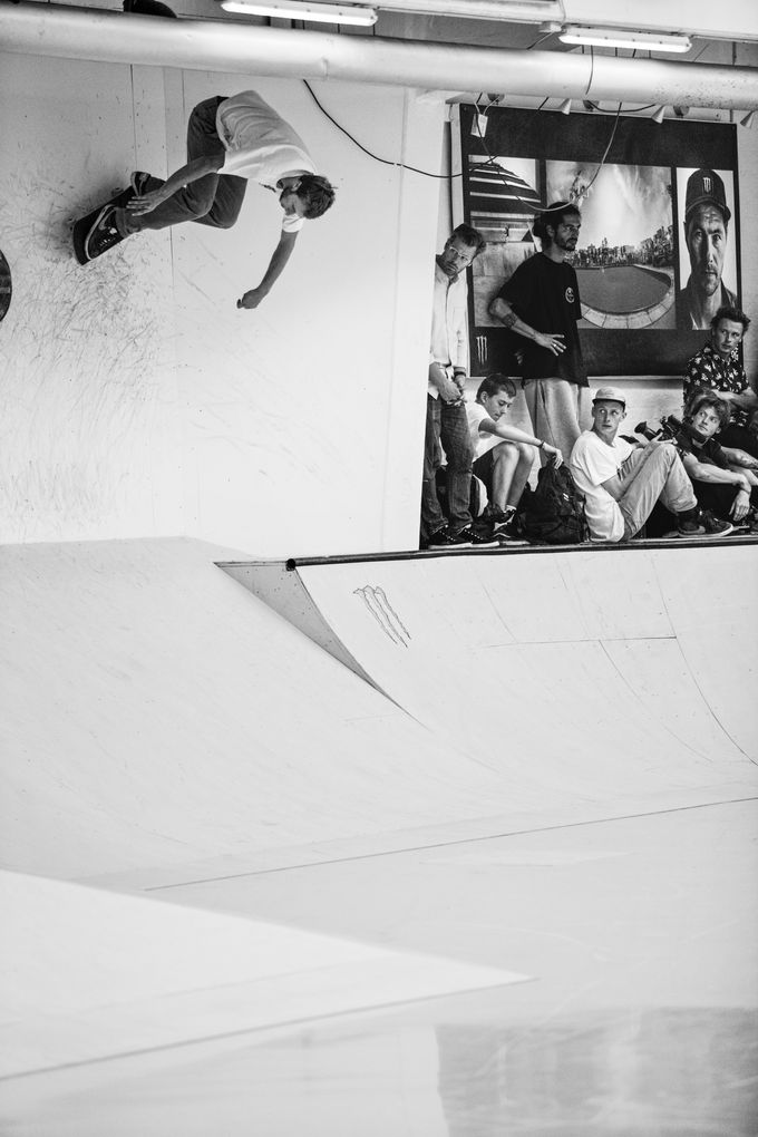 Friday starts off fairly relaxed, with the crew meeting at Enghaveparken to skate off the hangovers. I find out that half of them lost bikes or boards in the river last night, chucked in by Ben, and am glad to have skipped ‘the bridge’. When it starts raining we head down to the CPH Skatepark where an event is taking place, squeezing amongst the crowds to witness the likes of Kevin Baekkel and Truman Hooker tearing around a newly refurbished course. Even Gerwer can’t resist the pull of the new layout. A death race takes place on what looks like treacherously slick confines and Baekkel comes out on top, with Josef Scott Jatta close behind. A group of the Welsh crew have taken to ripping the peaks off each other’s hats, as well as anyone unfortunate enough to enter their vicinity, looking like mutant alcoholic swimmers taken to the land to wreak havoc. The ground dries so we head back too Enghaveparken where Dean Greensmith, Brendan Watson, Tom Bailey and Sox are taking on the bank to curb with slams and makes in equal measure.