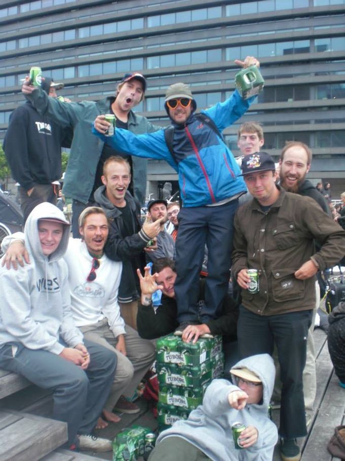 I join the others in the same corner as the previous night, with the only difference being the levels of drunk exhibited – while there is probably similar amounts of booze involved tonight is much sloppier, beer is covering half the platform hip and at least 3 people are sprawled out on the well-placed mattress at any given time. Reuben is passed out, next to the mattress, with his backpack as a pillow. I film Sox and Dannie Carlsen shredding and enjoy the site of the occasional drunk trying to walk down the beer soaked half of the hip. Knowing that when I leave I will have a walk home in torrential rain followed by a working morning and a flight back to London is not so bad when I can look either one way and see either Carlsen ollieing to back tail in the deep, or the other and see someone disappear below the lip in a spectacular flurry of flailing arms and spilt beer. As a summation of my entire trip, this couldn’t have worked better. See you next time Copenhagen…