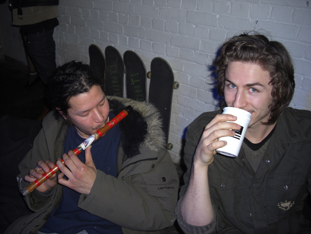 Boots takes a quick flute lesson from Ben 'I'm Not Crazy' Jobe up in the club.
