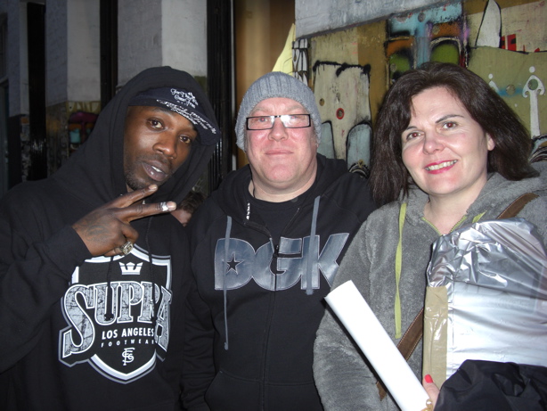 Now here's a photo I never thought I would be taking: Adam and Jane of I-five distribution and Stevie Williams of DGK. Hell Yeah!
