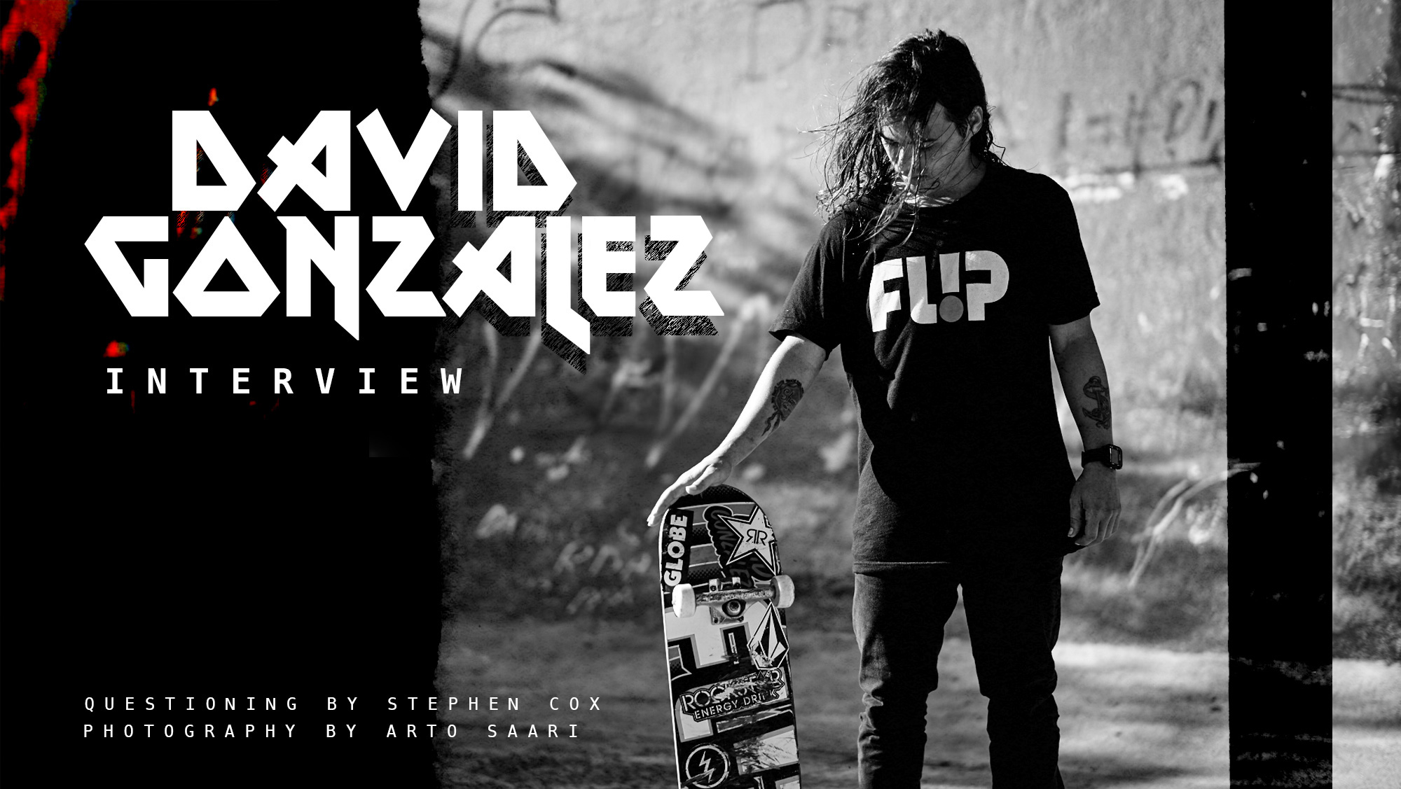 Our roving reporter Mr Cox caught up with Flip’s Colombian representative and fearless maniac David Gonzalez on the phone to chat filming for Volcom’s Holy Stokes!, his new ‘Eagle SG’ shoe from Globe, going to see Iron Maiden with Harry Bastard and why he’d be down to represent Colombia in the Olympics. Get well soon David…