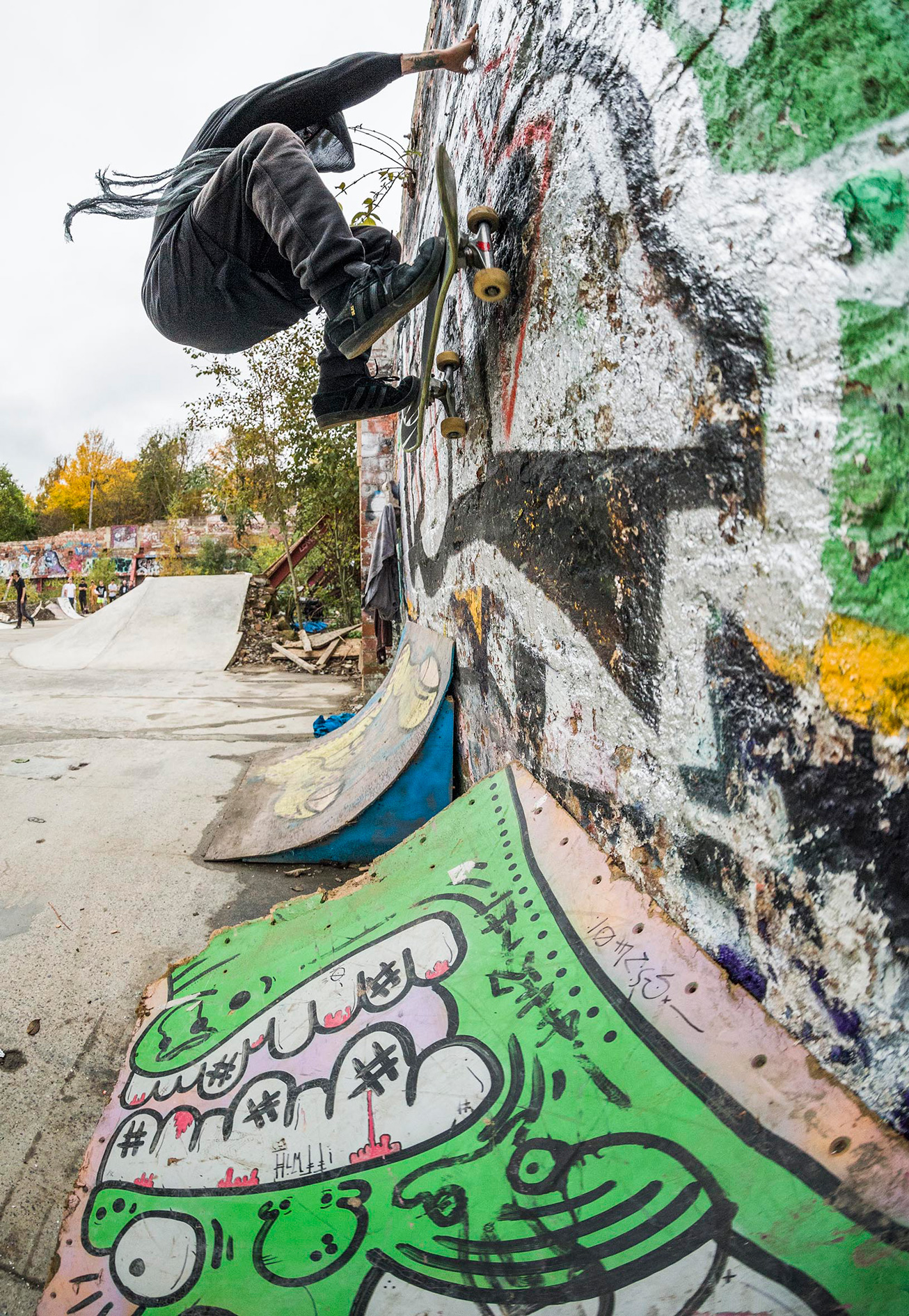 Above: Avid frontside wallrides under the hood – photo Reece Leung