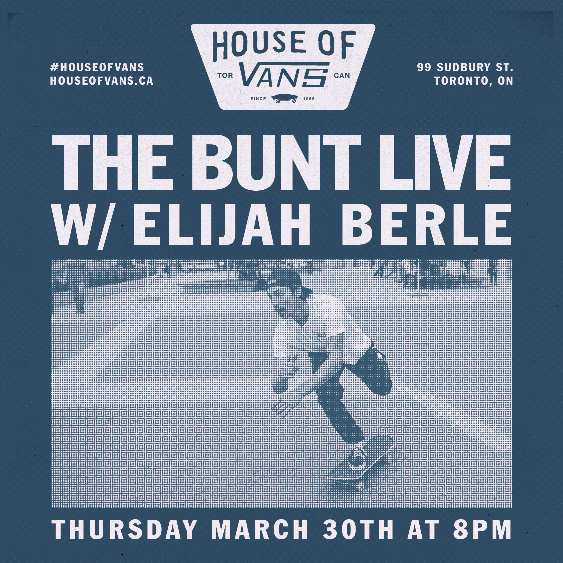 This Thursday Elijah Berle will be at the House of Vans Pop-Up in Toronto to be interviewed by Toronto-based podcast The Bunt. You can check it out from 1am tomorrow night (8pm their time) streaming on both the Vans Facebook page and on @vansskate Instagram.