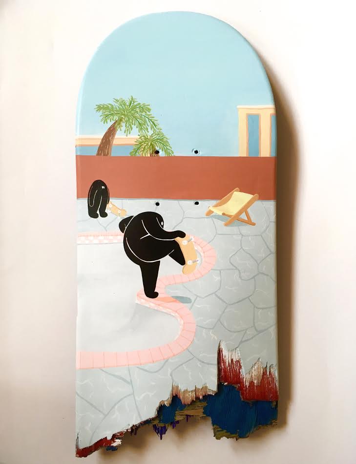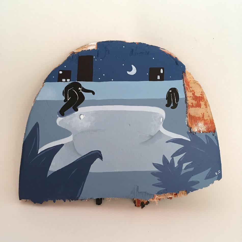 “3rd St” is a solo exhibition by Eloise Dörr taking place at Hamilton House in Bristol, exhibiting paintings she has completed throughout the year inspired by a trip to San Francisco in 2013. A selection of the paintings in the show are directly referenced to skateboarding and the architecture in San Francisco, while others are simply inspired by the weather and other light hearted aspects of the area.