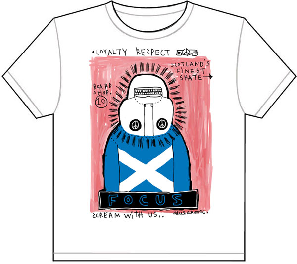 To celebrate ten years of Scotland’s staple skater owned shop, Focus, the good fellas at the store have teamed up with Chet “Luda Crooks” Childress to bring you a special anniversary shirt!