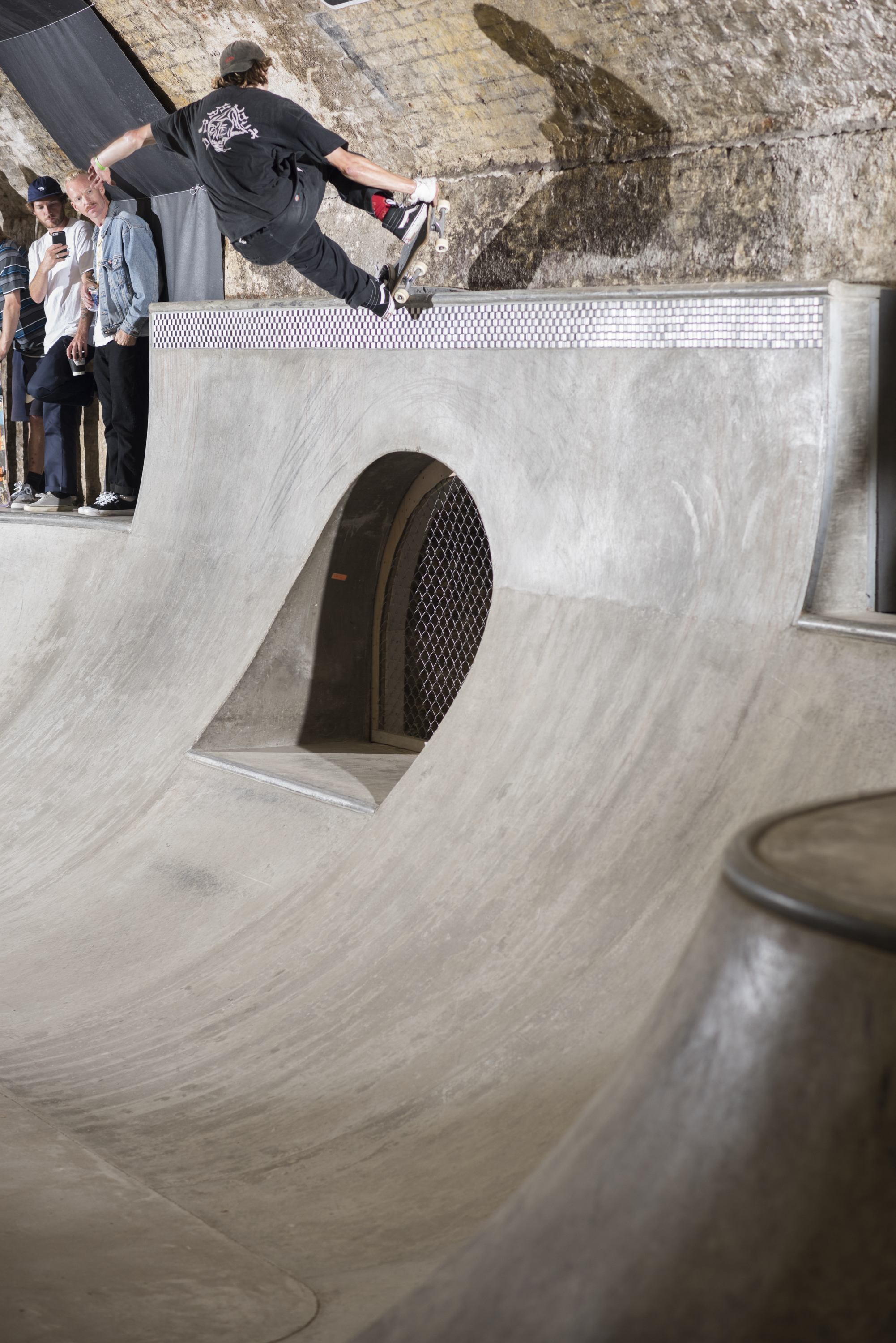 Last Thursday, House of Vans had an opening launch for their exhibition ‘Full Blast: 20 Years of Thrasher Photography by Michael Burnett’ which saw an international crew descend on the tunnel to check out a wide array of photographs from his years at the mag, drink free booze and get stuck into a heavy bowl session. This latter saw Ben Broyd destroying every inch of the bowl to take first place, followed by Taylor Jones – who also won best trick honours for a bastard plant off the roof – and Saul Crumlish, who seems to get better every time I see him.