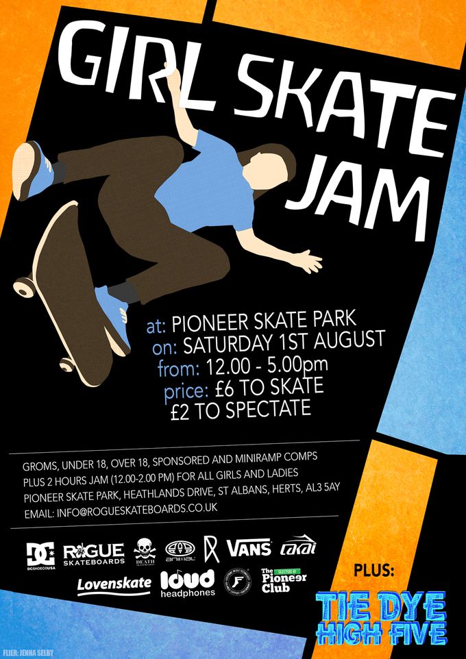 2 weeks until the annual Girl Skate Jam UK at Pioneer Skate Park, St Albans on Saturday 1st August.